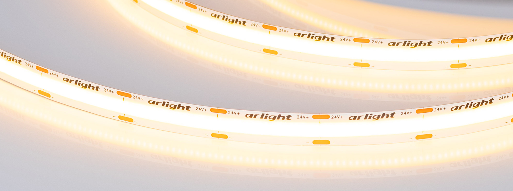 Светодиодная лента сплошного свечения COB серии X576 шириной 10 мм, мощностью 15 Вт/м. Светодиоды CSP, 576 шт/м, теплого цвета свечения (2400K). Высокая световая эффективность (150 лм/Вт) позволяет применять ленты для основного энергоэффективного освещения жилых и коммерческих помещений. Минимальный отрезок 27.8 мм. Эффект сплошной линии света создается без применения рассеивающих экранов. Используется для декоративной подсветки рекламных конструкций и витрин. Обязательна установка на профиль.