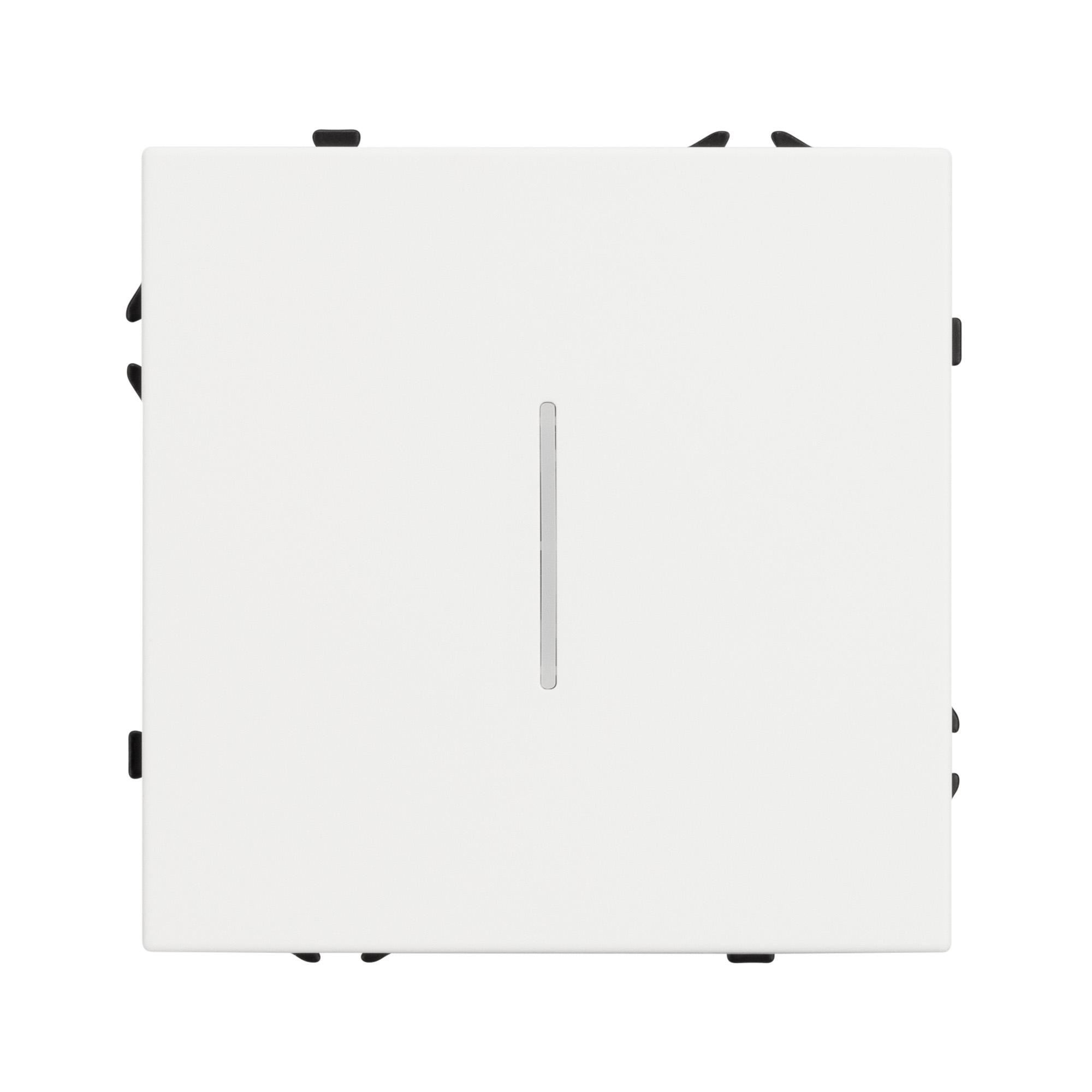 Механизм выключателя света клавишный на 1 пост 1 клавиша (проходной). Цвет - белый, с Soft-Touch покрытием. Клавиша имеют активную LED подсветку - cинего свечения. Без фронтальной рамки. Уровень пылевлагозащиты IP20. Выключатель устанавливается в стандартный круглый подрозетник круглого сечения диаметром 60мм.