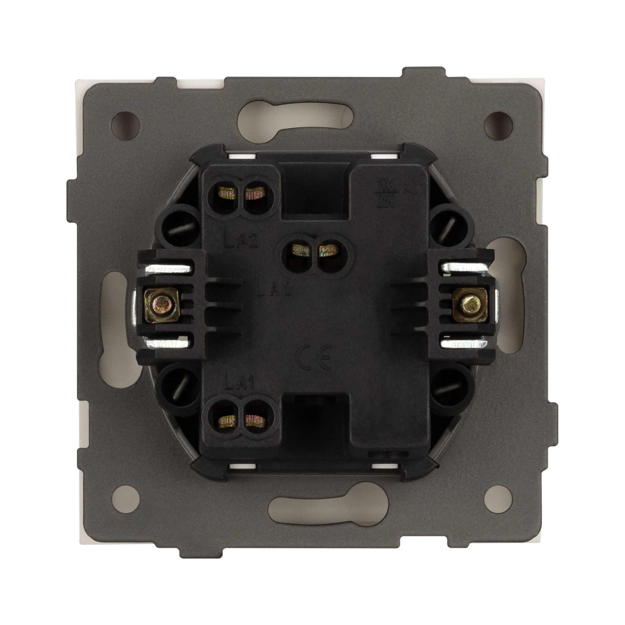 Механизм выключателя света совместим с рамками серии TENDO, создает утонченный минималистичный вид. Скрытый тип монтажа позволяет гармонично встроить в интерьер любого современного дизайн-проекта. Видимая часть механизма выполнена из высококачественного пластика золотого цвета и имеет Soft-Touch покрытие, что придает изделию приятные тактильные ощущения и стильный внешний вид. Контактная часть присоединяется при помощи винтовых зажимов, позволяя надежно подсоединить механизм выключателя к питающим элементам. А усиленные распорные лапки двойного захвата надежно фиксируют механизм в установочном подрозетнике круглого сечения диаметром 60мм. Суппорт окрашен порошковой краской и выполнен из металла толщиной 1,5мм, что обеспечивает безопасность и уверенность в установке. На каждой стороне суппорта размещены фиксирующие элементы, позволяющие комбинировать механизмы в системы до 5 шт как горизонтально, так и вертикально.