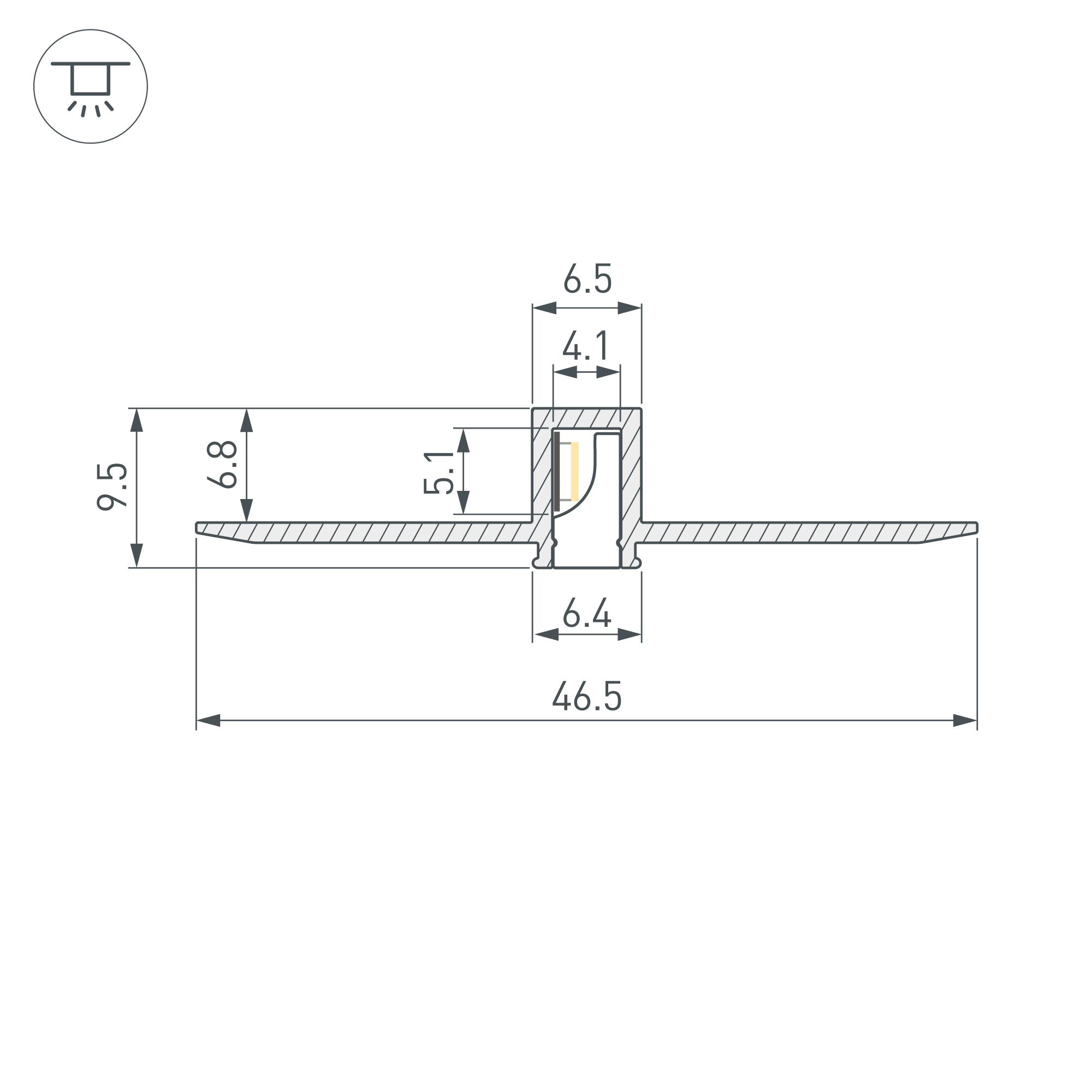 Встраиваемый профиль со скрытым фланцем из анодированного алюминия под строительную отделку для контурной подсветки интерьера. Габаритные размеры профиля составляют 2000 мм в длину, 46,5 мм в ширину и 9,5 мм в высоту. Площадка для установки светодиодных лент позволяет использовать ленту шириной до 5 мм и мощностью до 17,5 Вт/м. Это обеспечивает гибкость в выборе светодиодных лент и создает потрясающие световые решения. Экран не включены в комплект и приобретаются отдельно. Цена указана за 1 метр профиля. Отличное решение для создания современных световых проектов.
