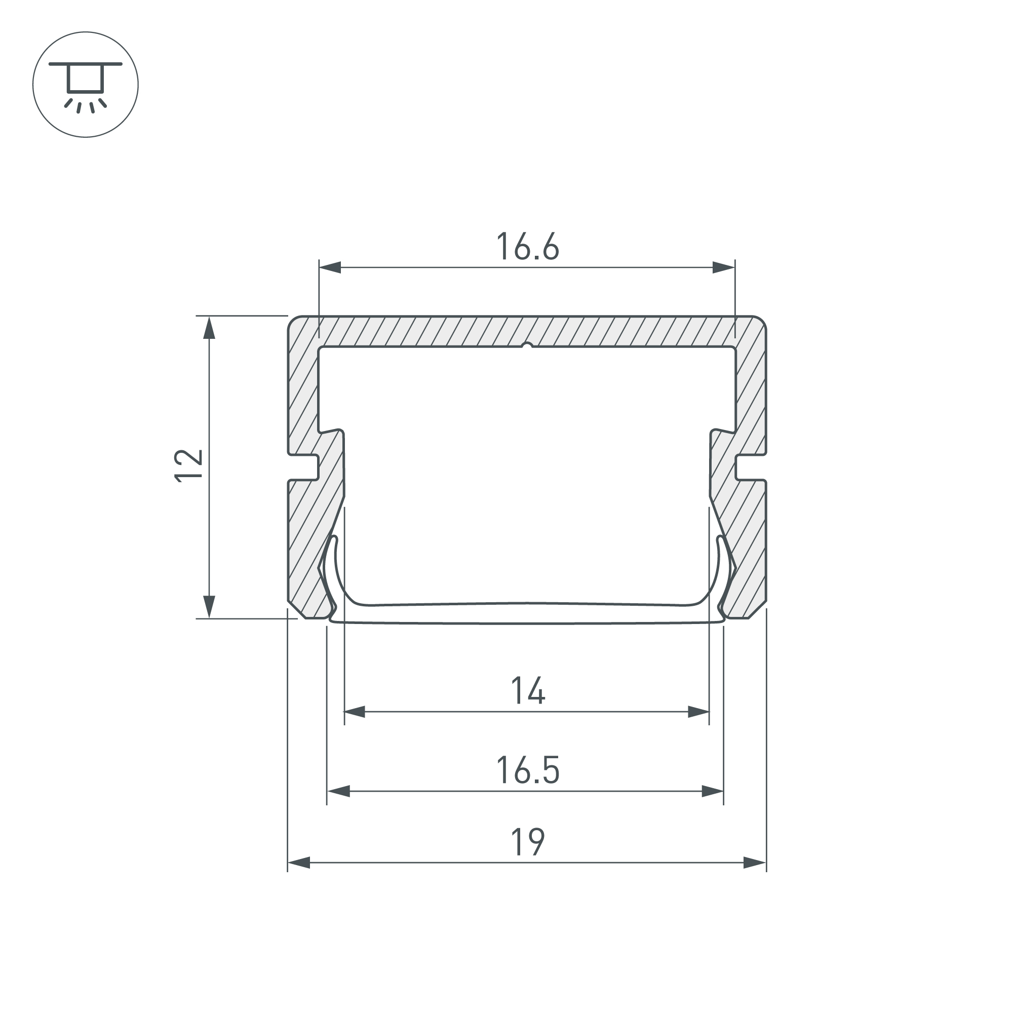 Расширенная площадка для лент в оболочке до 15мм. Класс пылевлагозащиты – IP67 (при соблюдении технологии герметизации). Габаритные размеры (L×W×H): 2000x19x12 мм. Ширина площадки для ленты 16,6 мм. Экраны, заглушки и другие аксессуары приобретаются отдельно. Цена за 1 метр.