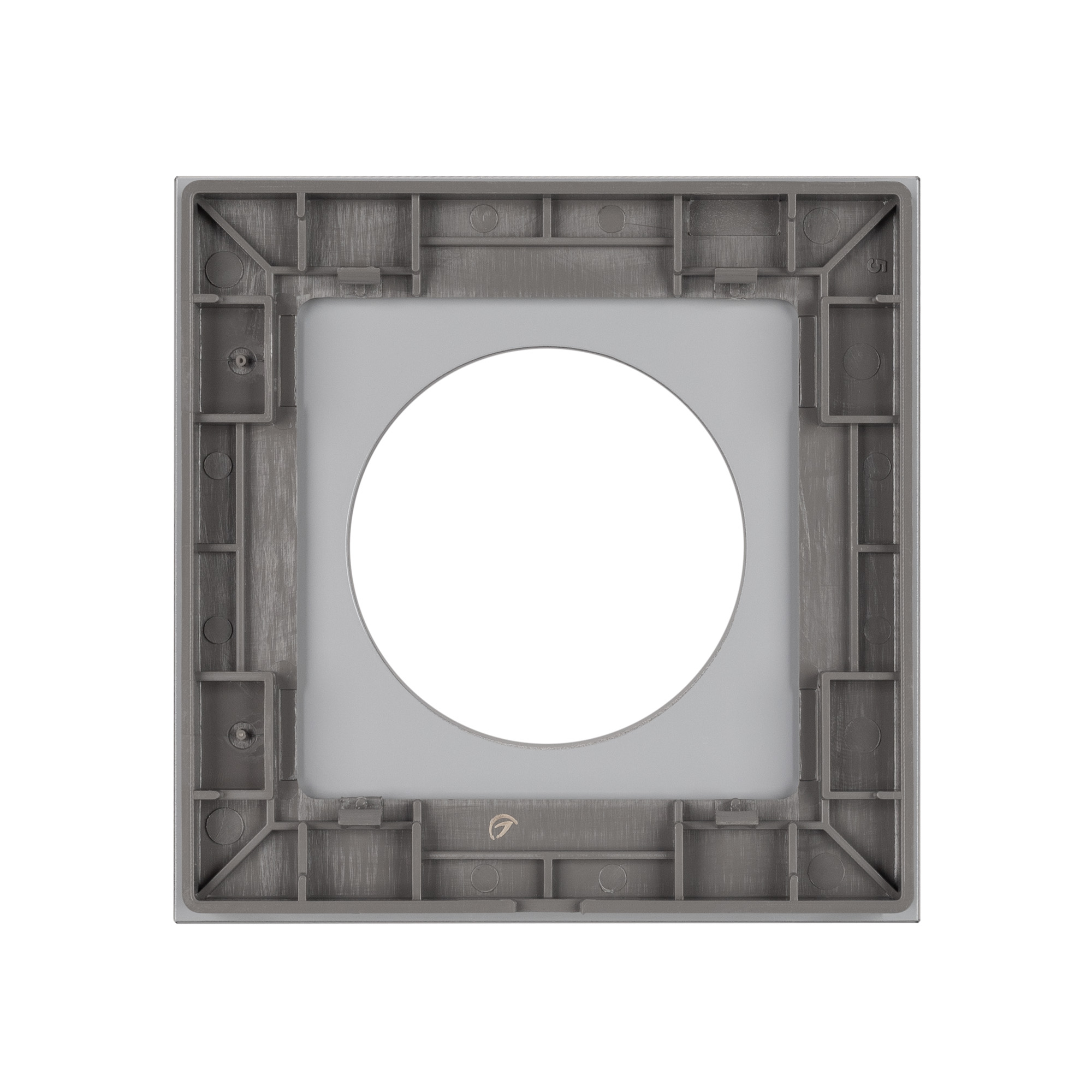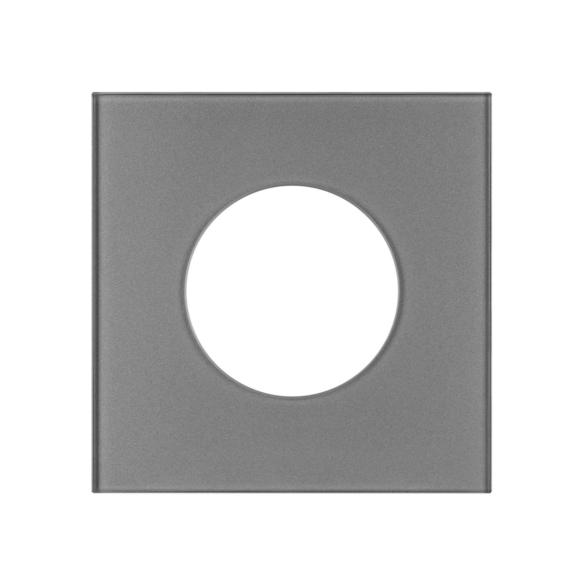 Рамка стеклянная на 1 пост, под встраиваемый механизм. Вырез под функциональную часть круг. Цвет - серый. Ориентации монтажа - горизонтальная.