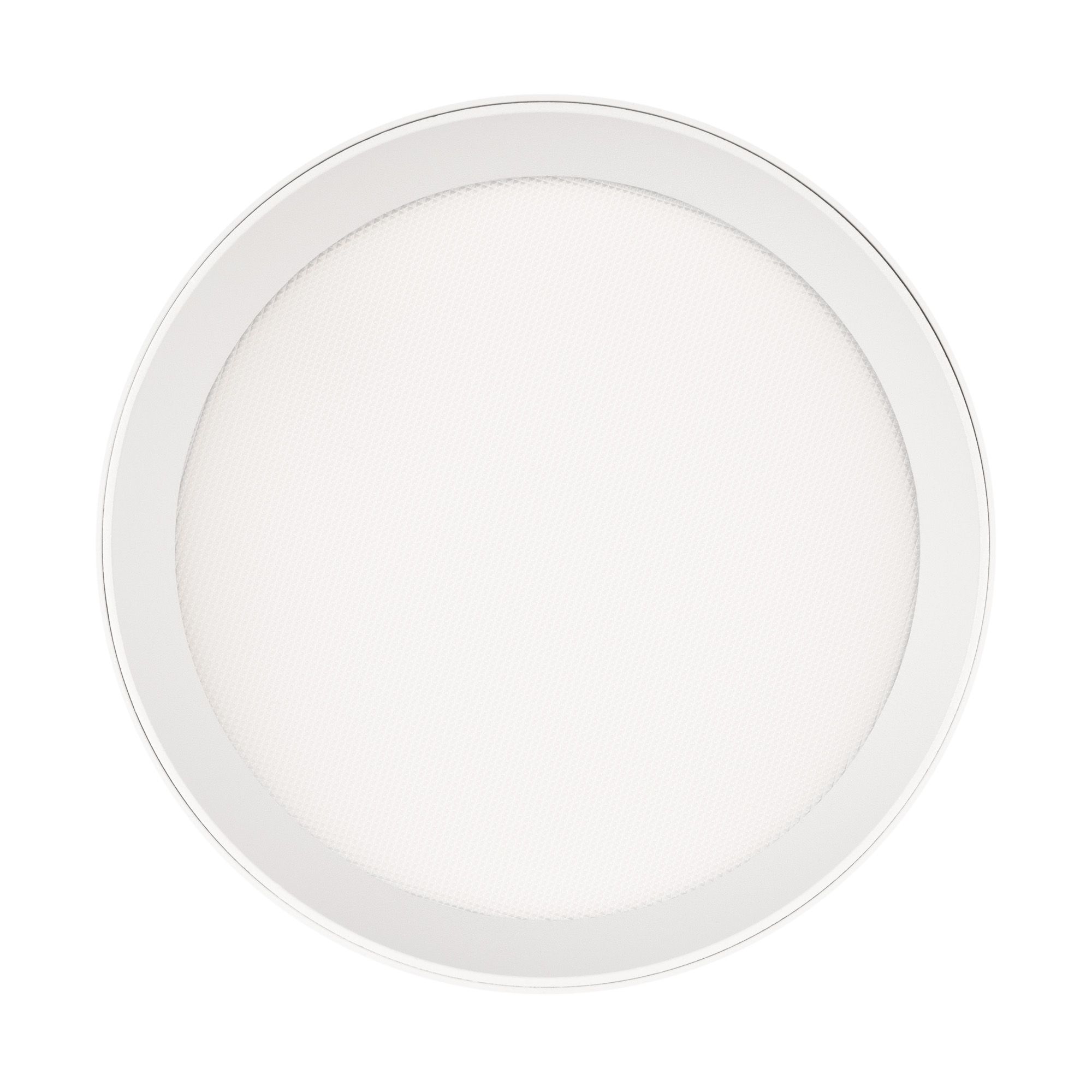 Накладной светильник. Мощность 15 Вт, св. поток 1100-1160 лм, 80-85 лм/Вт, теплый 2700 K, теплый 3300K, дневной 4000K (переключается), CRI>90, угол 80°, напряжение питания 230 В. Белый круглый корпус из алюминия, экран PC, степень защиты IP54. Размер: диаметр 140 мм, высота 85 мм. Монтаж накладной. Драйвер 26-42 В, 350 мА, пульсация <2%.