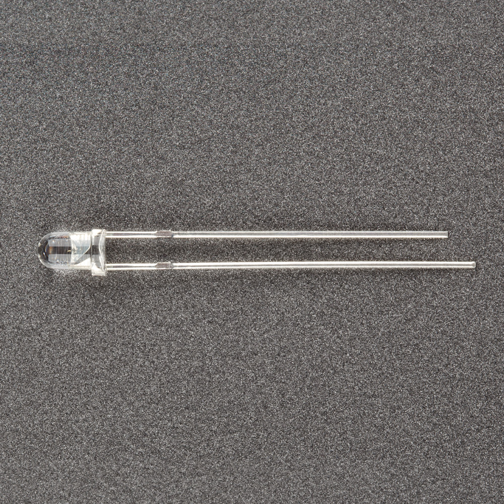 Выводной светодиод круглый, d=3мм, прозрачная линза.Цвет свечения красный (625 нм). Угол 30°. Сила света Iv=1000-3000 мкд при If=20мА. Встроенный резистор на 12 В. VF=11-14 В.
